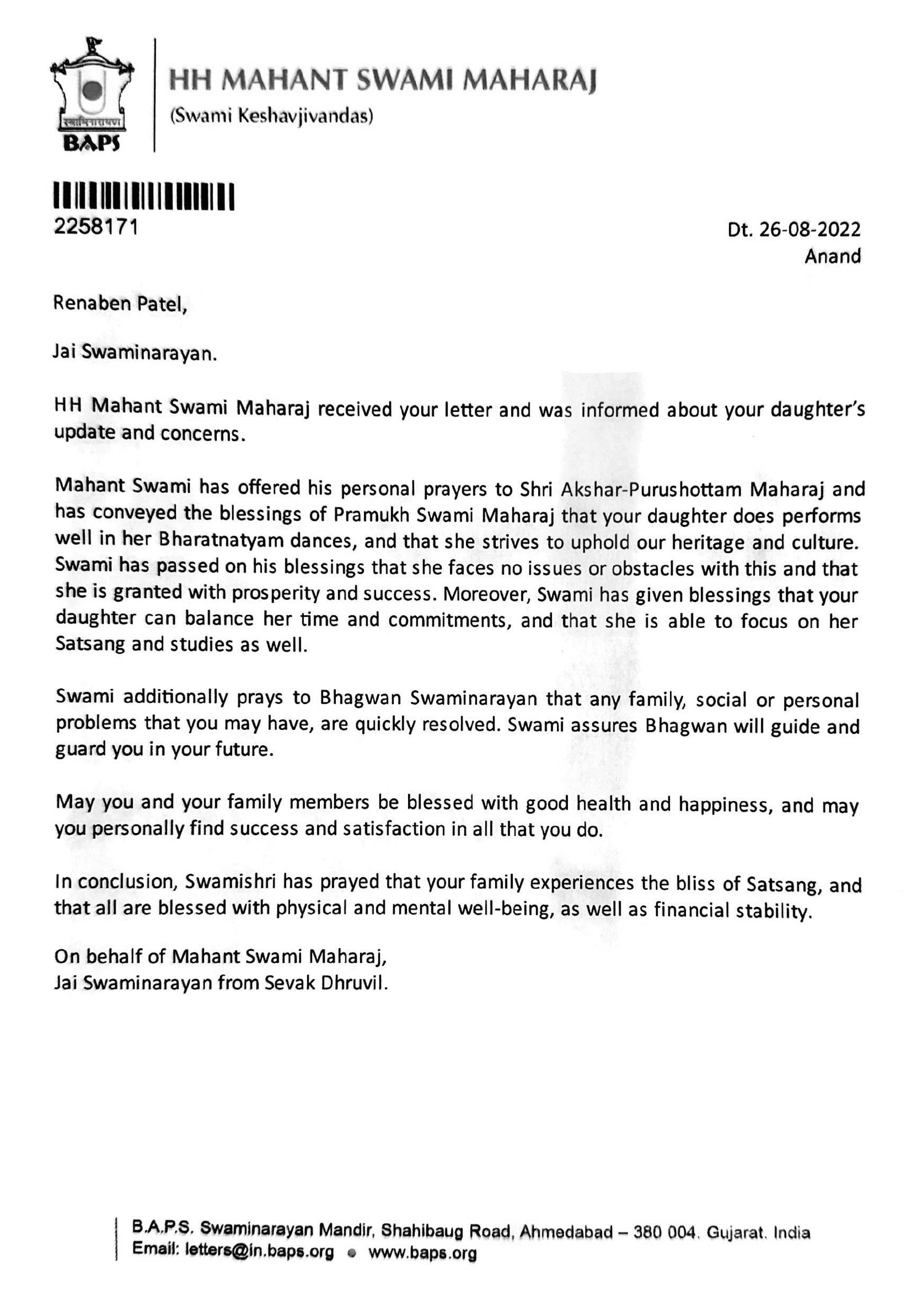 Guru Smt. Ditptiben Dave and the BAPS Shree Swaminarayan Mandir,